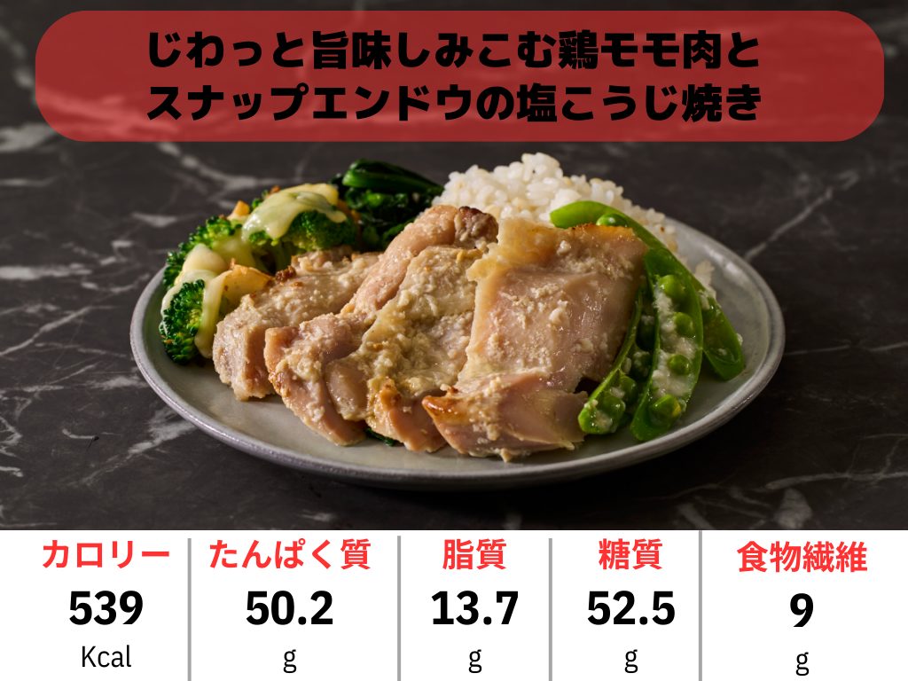 01_B-MO01 じわっと旨味しみこむ鶏もも肉とスナップエンドウの塩こうじ焼き